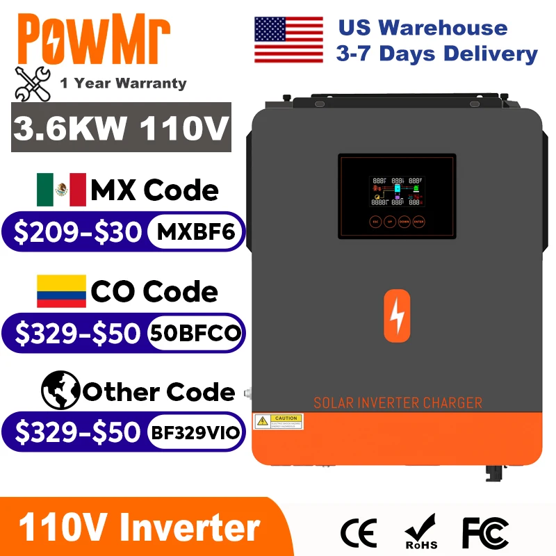 PowMr Гібридний сонячний інвертор 3.6 кВт Off-Grid