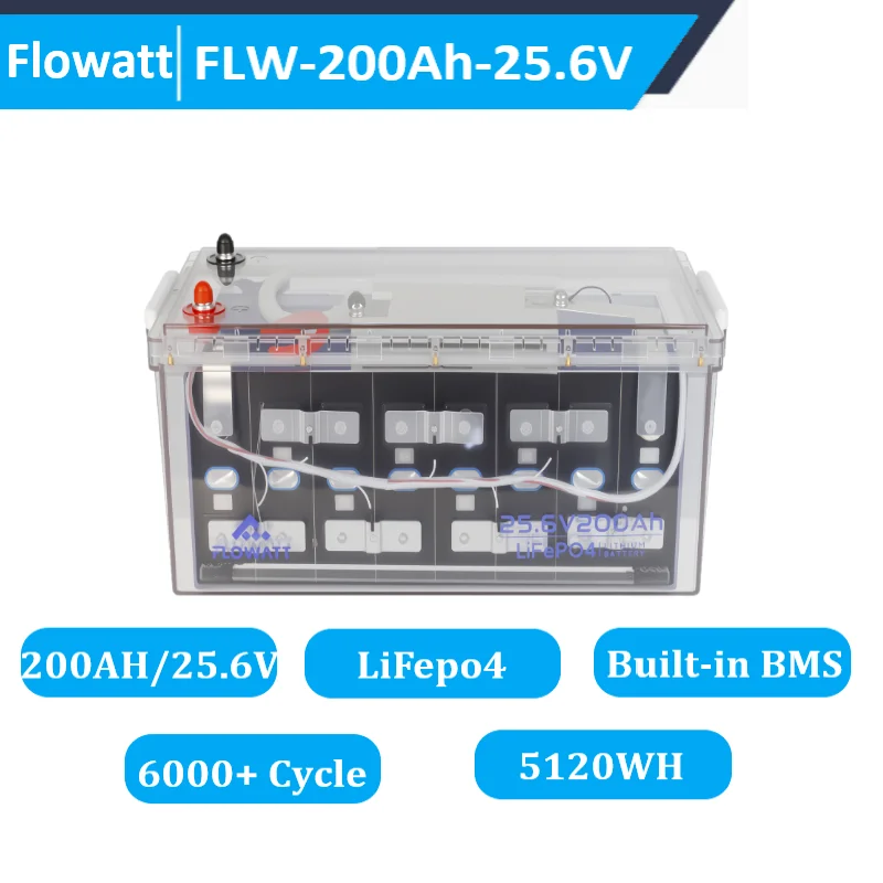 24V 200Ah Lithium Iron Phosphate Battery 5KWh Home and Outdoor Energy Storage Battery 6000 Cycle Built-in BMS Fast Charging Cell