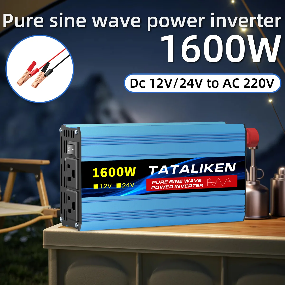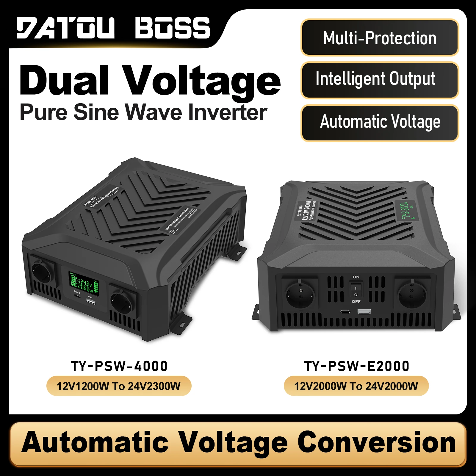 DATOUBOSS Portable Car Inverter 1200W 2000W 3000W Pure Sine Wave Dual Voltage Inverter 12V to 24V Auto Switching Solar Inverter