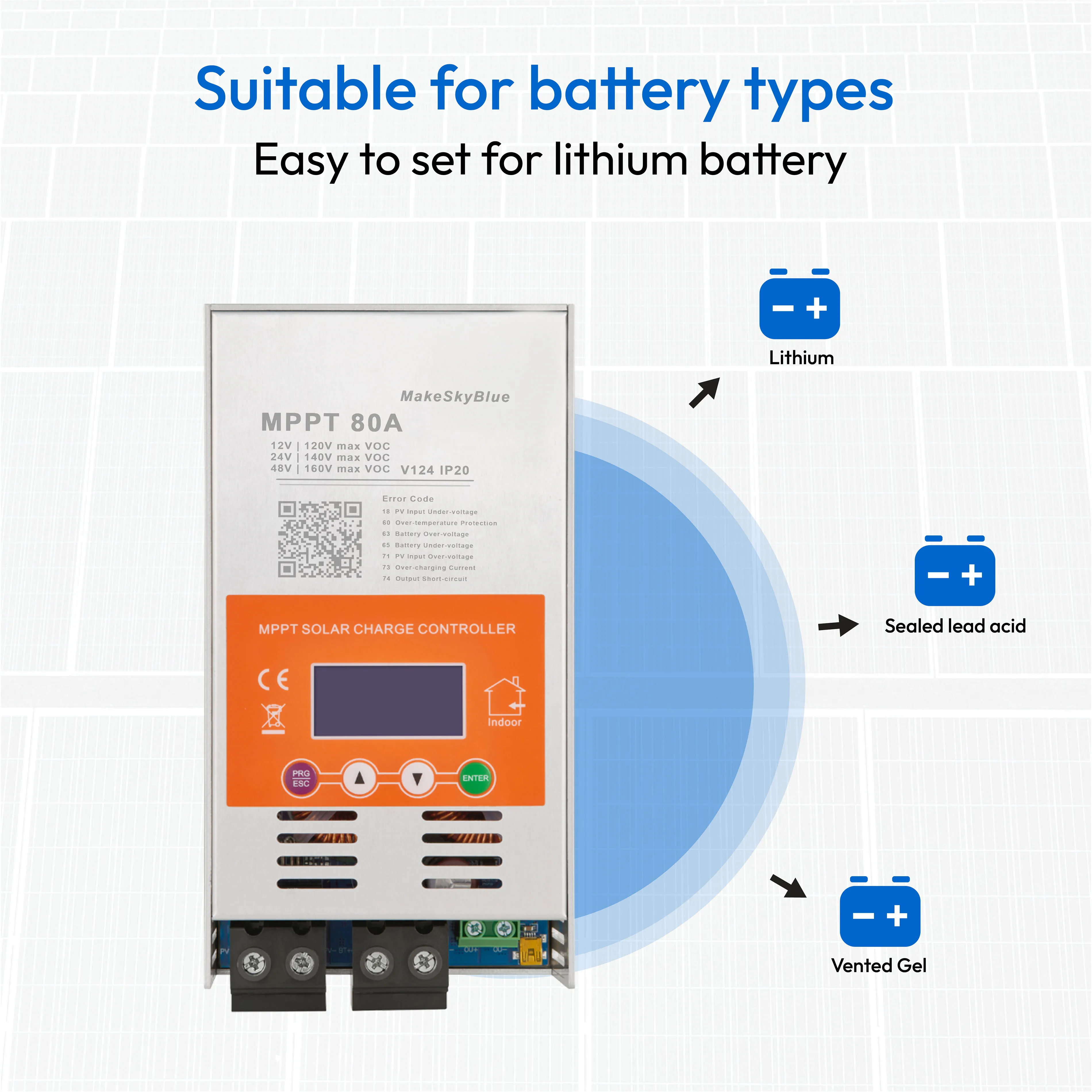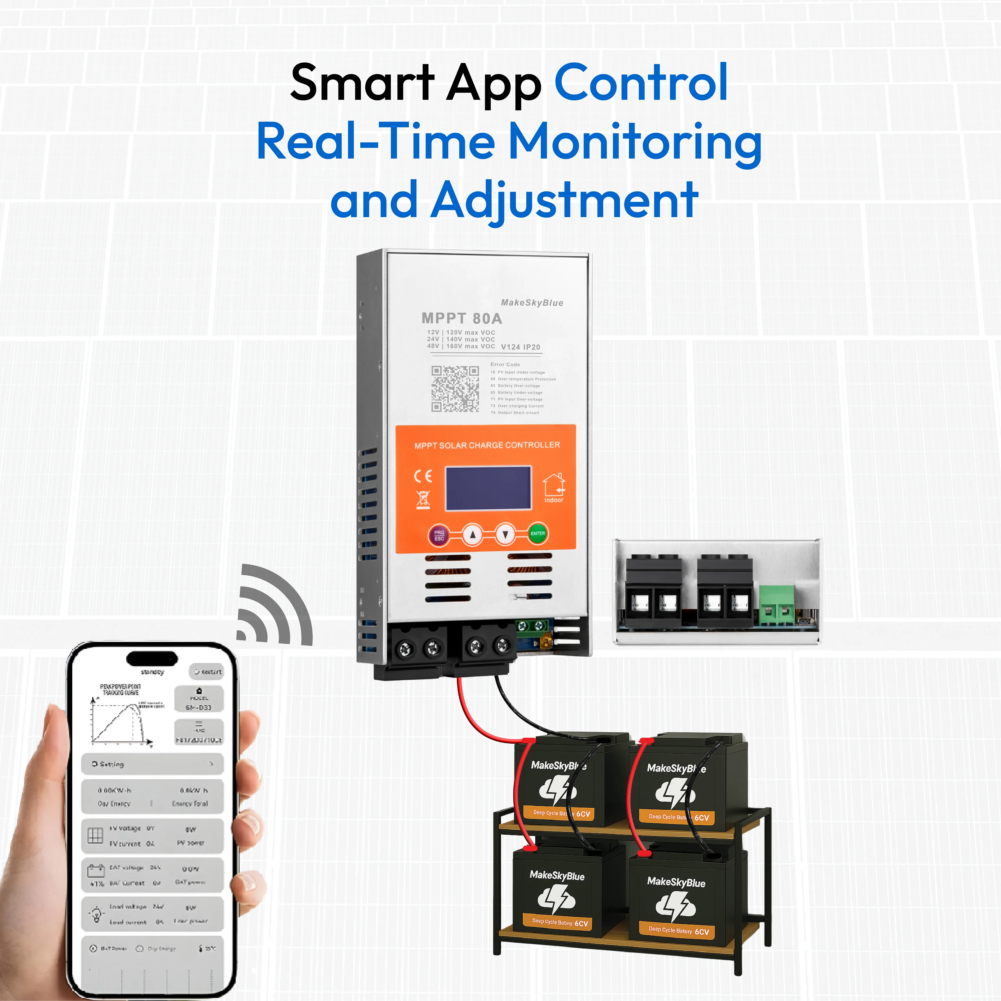 MakeSkyBlue Upgraded V124 80A MPPT Solar Charge Controller, 12V/24V/48V Auto, Compatible with Lithium, LiFePO4, AGM