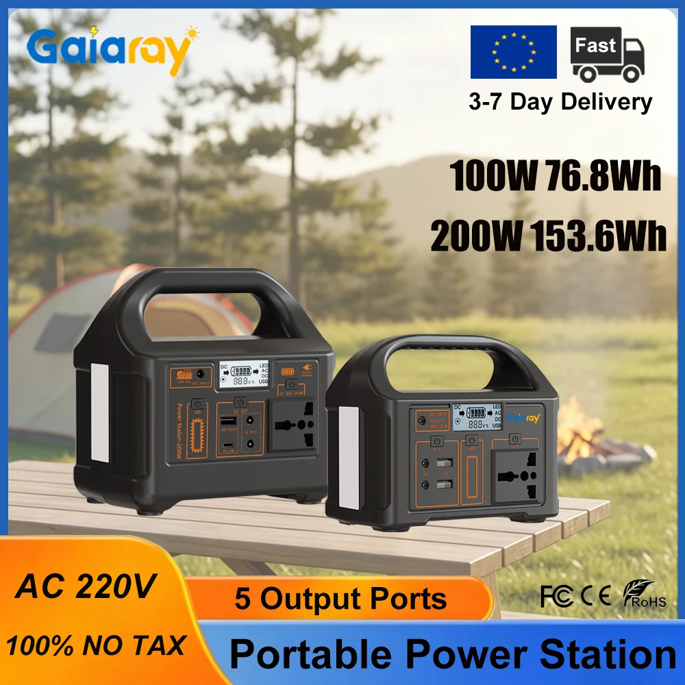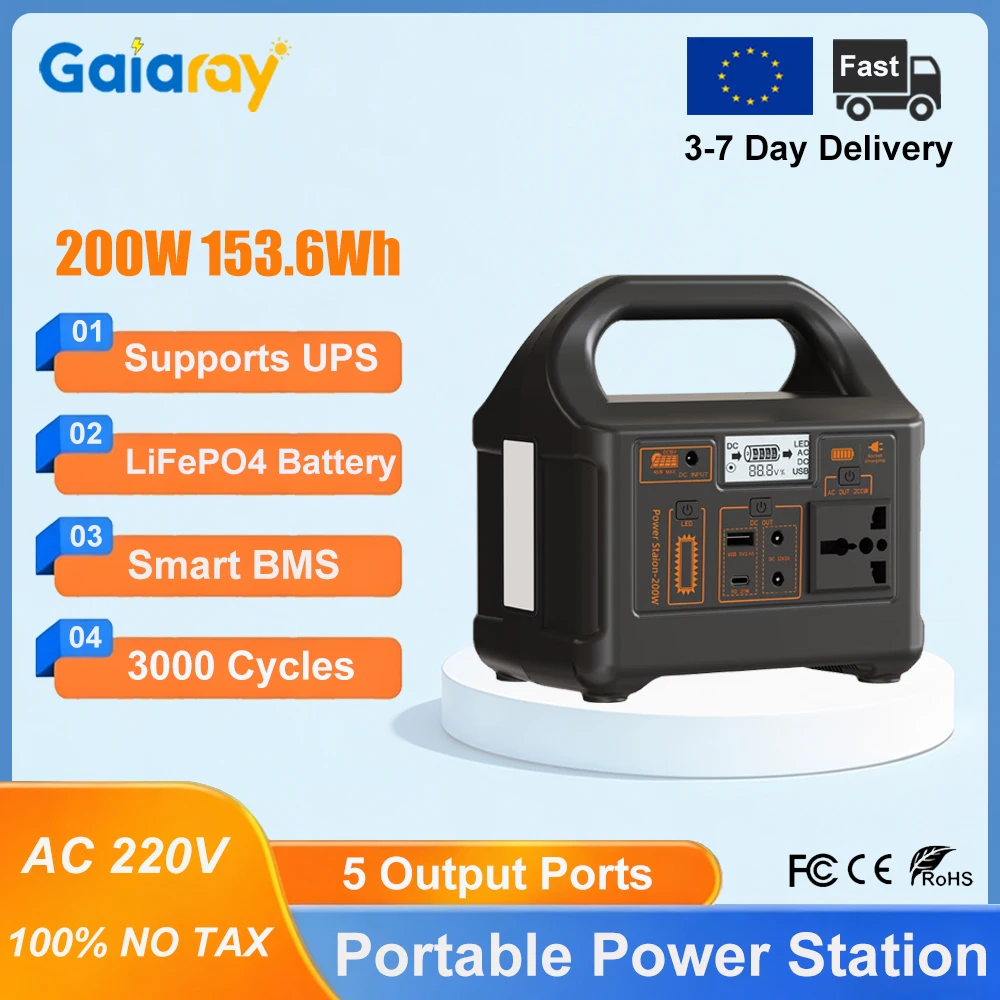 Gaiaray 100W 200W Portable Power Station AC 220V LiFePO4 Battery Charging Station Solar Generator Power Plant for Home Camping