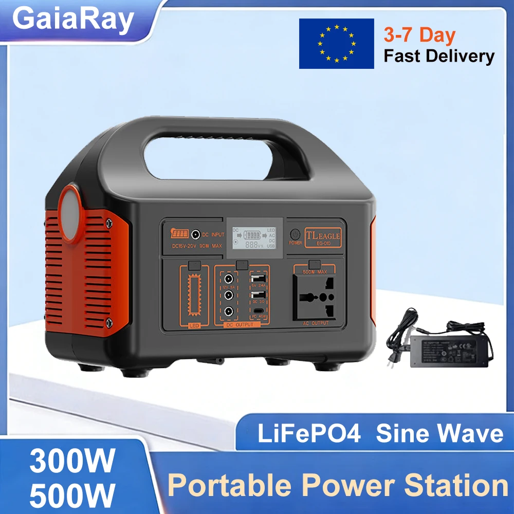 Gaiaray 500W 300W Portable Power Station Solar Generator LiFePO4 Charging Station Emergency Power Plant UPS for Outdoor Camping